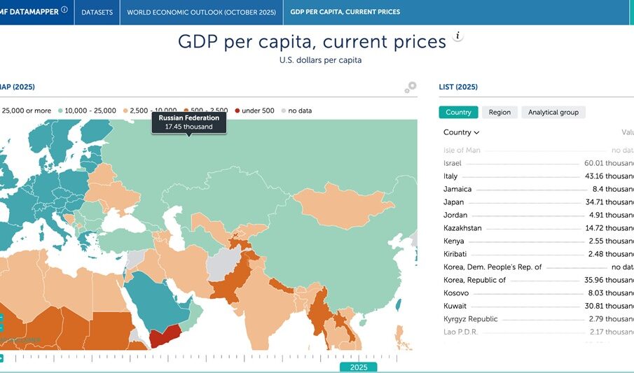 МВФ рассчитывает ВВП на душу населения по текущим ценам, что позволяет оценить общий уровень благосостояния и покупательной способности.