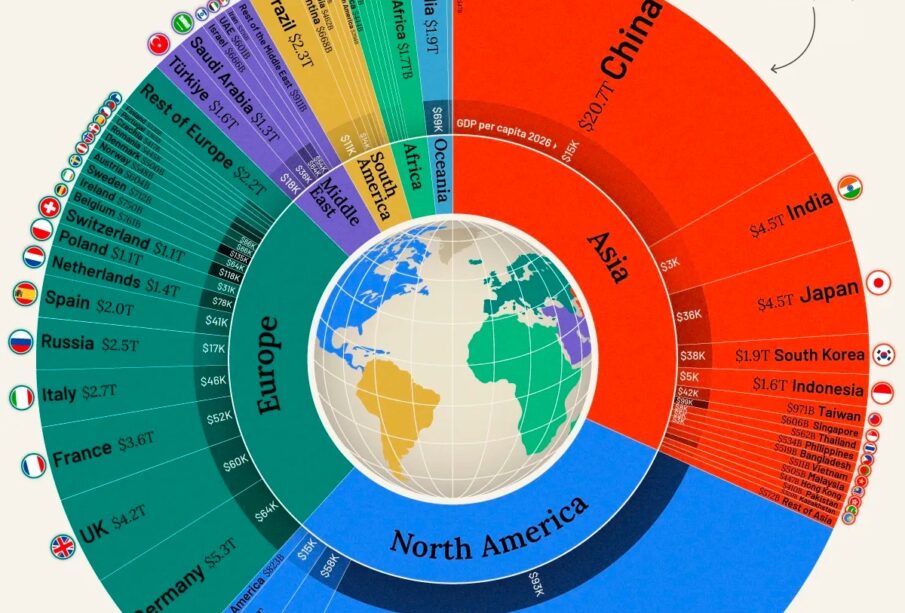 Расстановка лидеров остаётся прежней: США – с прогнозируемым ВВП в $31,8 трлн (по-прежнему крупнейшая экономика мира), Китай – $20,7 трлн,Германия – $5,3 трлн, Индия – $4,5 трлн (удерживает место, обогнав Японию ещё в 2025 году).